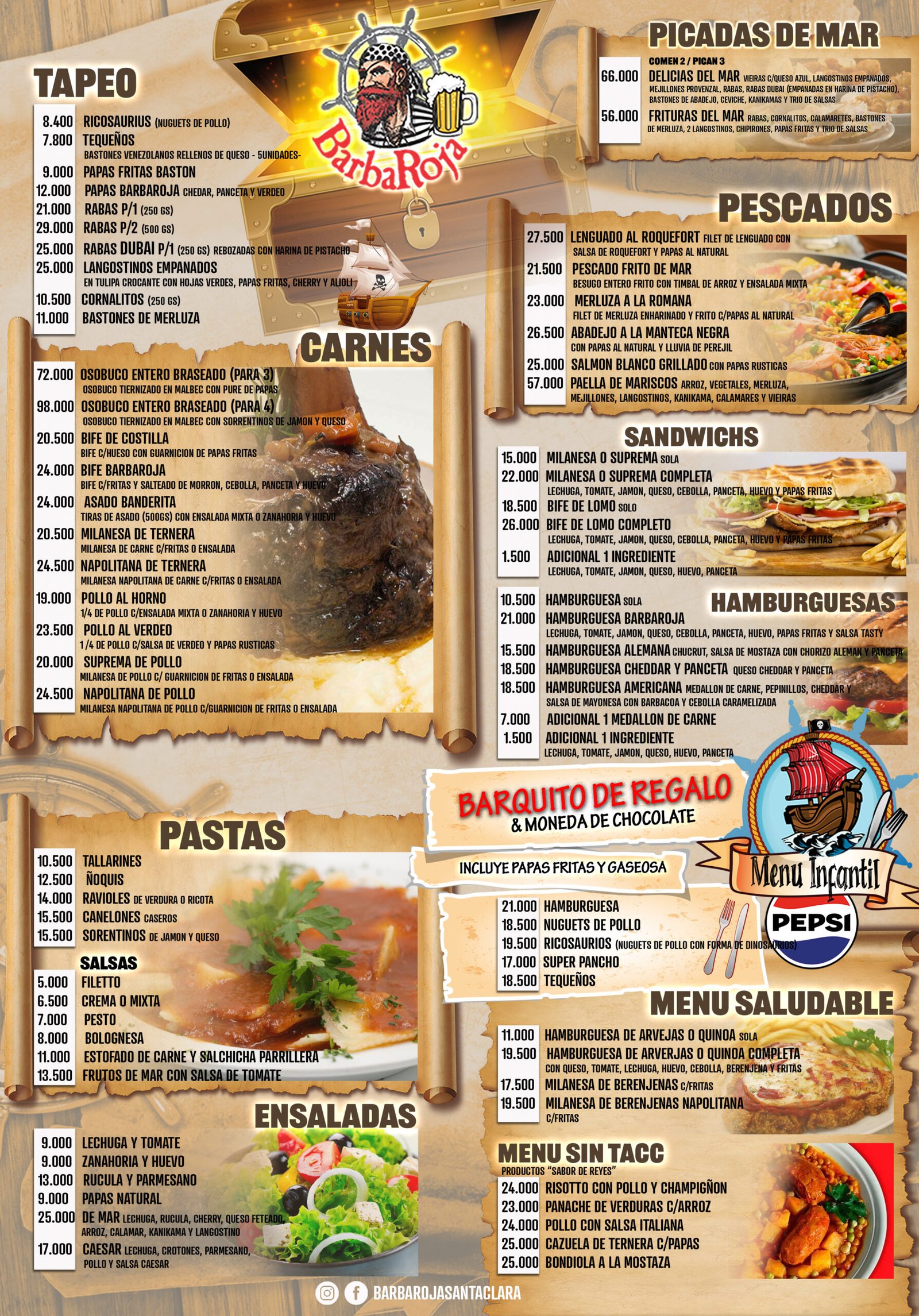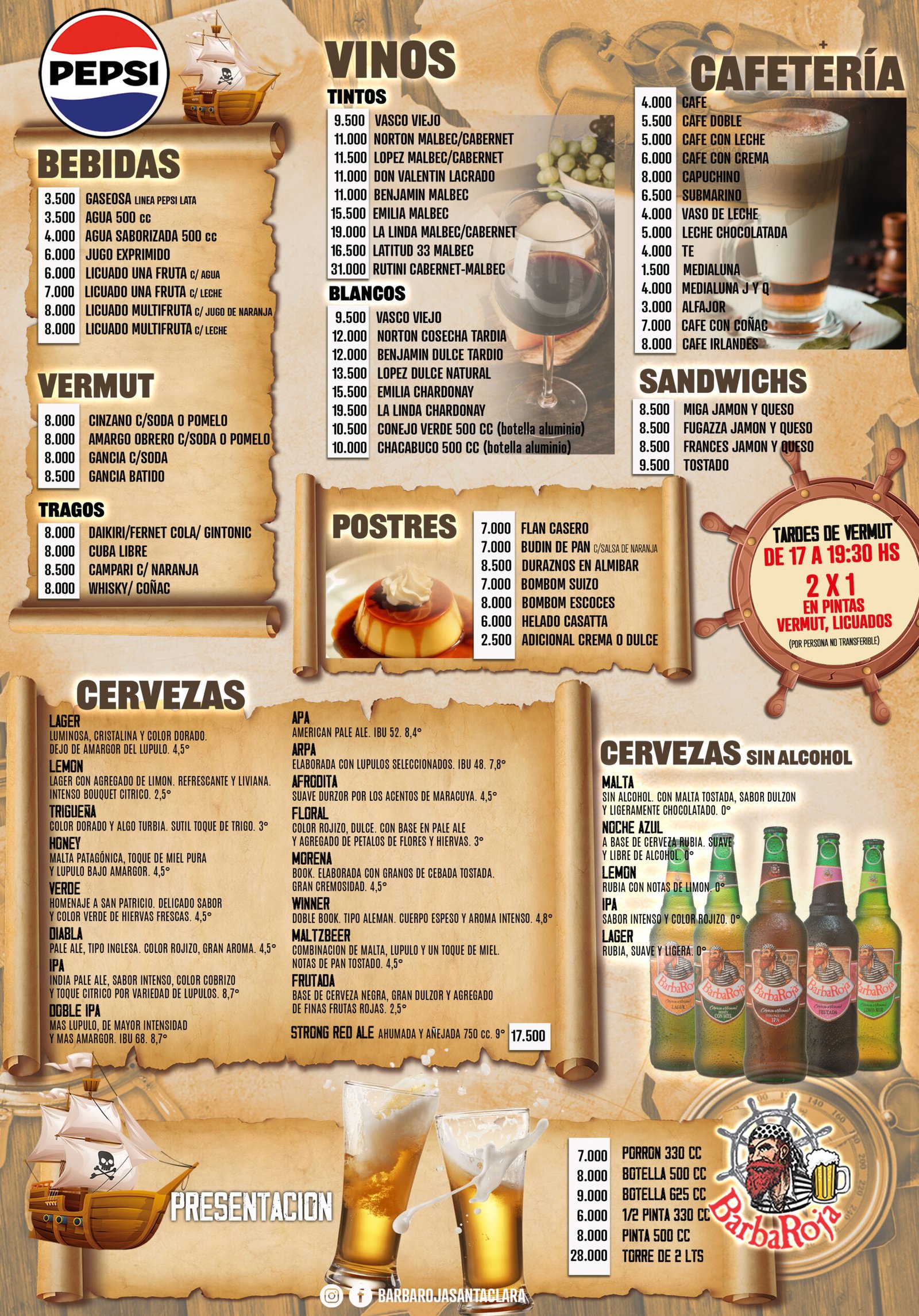 Bienvenido a **Barba Roja**, el restaurante cervecero familiar más emblemático de Santa Clara del Mar. Con 21 años de tradición, somos reconocidos por nuestra oferta única de **26 sabores de cerveza artesanal** de la marca Barba Roja, elaborada con ingredientes de la más alta calidad. Acompañando nuestras cervezas, ofrecemos una **carta gastronómica diversa** con más de 100 platos que combinan sabores locales e internacionales. Desde pescados y mariscos frescos, hasta carnes, pastas y platos típicos de varios países, como tacos, ceviche peruano, paellas españolas y pescado frito venezolano.